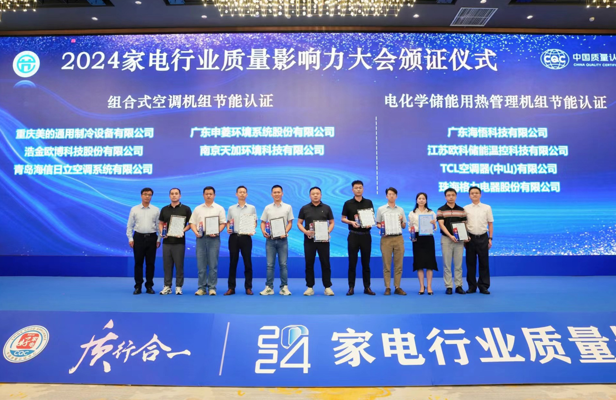 實力彰顯!EK儲能液冷熱管理機組榮獲CQC中國節能認證2024-09-20在2024家電行業質量影響力大會頒證儀式上,EK榮獲電化學儲能用熱管理機組節能認證。