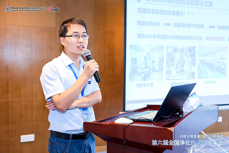 年會現場,EK空調高級工程師張曉偉以《三管製冷凝熱回收係統節能解決方案》為主題發表演講,向現場嘉賓和觀眾介紹了EK兼具潔淨和節能優勢的三管製冷凝熱回收係統節能解決方案,並分享了EK三管製在醫療、製藥、實驗室等潔淨和恒溫恒濕場所的節能應用。