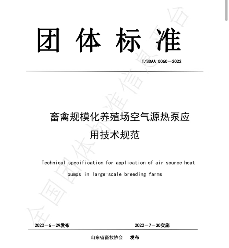 此背景下,山東省畜牧協會聯合山東省畜牧總站、EK空調等企業,製定了《畜禽規模化養殖場空氣源熱泵應用技術規範》。在(zai)清(qing)潔(jie)冷(leng)暖(nuan)方(fang)麵(mian)相(xiang)關(guan)技(ji)術(shu)應(ying)用(yong)標(biao)準(zhun)缺(que)失(shi)的(de)國(guo)內(nei)畜(chu)禽(qin)養(yang)殖(zhi)行(xing)業(ye),該(gai)標(biao)準(zhun)的(de)製(zhi)定(ding)可(ke)有(you)效(xiao)成(cheng)為(wei)養(yang)殖(zhi)行(xing)業(ye)清(qing)潔(jie)冷(leng)暖(nuan)項(xiang)目(mu)工(gong)程(cheng)建(jian)設(she)中(zhong)的(de)相(xiang)關(guan)技(ji)術(shu)規(gui)範(fan),讓(rang)養(yang)殖(zhi)企(qi)業(ye)選(xuan)擇(ze)空(kong)氣(qi)能(neng)設(she)備(bei)時(shi)“有標可依,有據可測”,讓畜禽養殖清潔冷暖項目工程質量進一步得到保障。
