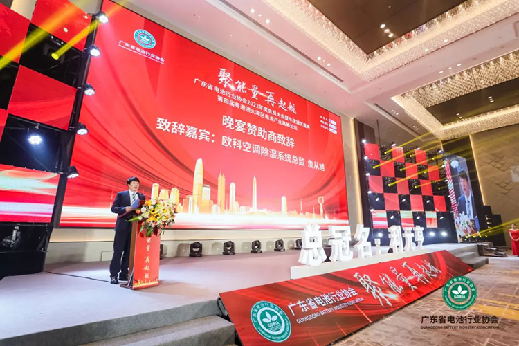 在由【EK轉輪除濕讚助】的晚宴及頒獎盛典上,EK除濕係統總監詹從旭上台致辭,他表示:EK在工業環境的溫度控製、濕度控製、潔淨控製方麵做了大量的研發工作,為全球上萬個用戶提供了高質量的產品和服務。EK今天帶來的ADR-DRY一體化高效轉輪除濕機 X2.0係列產品將進一步提升EK除濕係統的節能效果,並確保轉輪除濕產品的運行可靠性,為電池客戶提供一個高標準、低能耗的濕度環境。在全球電動化浪潮和節能減排共識下,EK願意和廣東省電池行業協會及所有會員單位一起完成低碳減排賦予我們的時代使命。