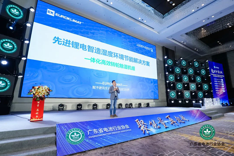 在第四屆粵港澳大灣區電池產業高峰論壇上,EK IECD工業環境控製事業部總監王健以《先進鋰電智造濕度環境節能解決方案》為主題發表演講,和現場嘉賓詳細介紹了EK在鋰電工廠環境濕度控製方麵的全套節能解決方案。