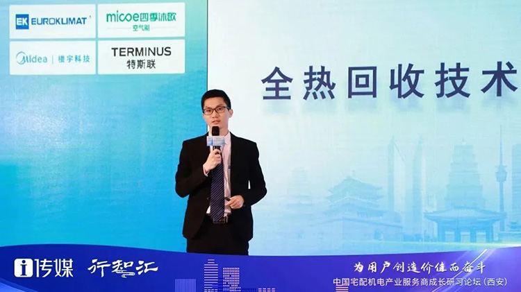 在響應國家“雙碳”目標的路徑中,熱回收技術成為了我國暖通空調行業正在積極探索的方向之一。來自不同應用場景的既有需求被全麵激活,給“熱回收技術”市場的繁榮夯實了基石。本次論壇,EK空調產品經理陳旭金以《全熱回收技術的應用與發展趨勢研究》為主題發表演講,和現場嘉賓介紹了EK全熱回收技術的發展、優勢以及在酒店領域的應用案例。