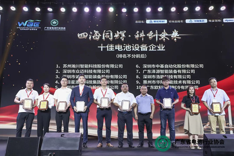8月9日,中國電池行業最高規格協會周年盛典:2023世界電池之夜——廣東省電池行業協會四周年慶典暨2023世界電池產業博覽會金獎頒獎盛典在廣州·香格裏拉大酒店隆重舉行。EK作為廣東省電池行業協會常務副會長單位和WBE2023世界電池產業博覽會參展企業,受邀出席並榮獲“展品金獎”、“十佳電池設備企業”兩項大獎。