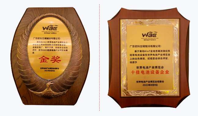 EK全壽命高效集成式轉輪除濕站憑借適用範圍廣、操作方便、高效節能等優勢榮獲“展品金獎”。基於該產品及AloT全場景高效溫控係統等電池設備在世界電池產業博覽會上的出色表現,EK還被組委會授予“十佳電池設備企業”稱號。