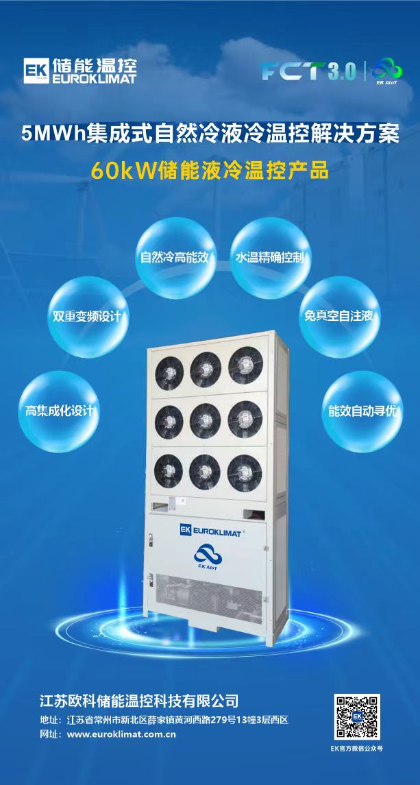 內卷時代推動科技創新,從2.5MWh到3.5MWh再到現在的5MWh,大容量儲能電芯再迎新突破。而隨著5MWh 儲(chu)能(neng)係(xi)統(tong)功(gong)率(lv)和(he)能(neng)量(liang)密(mi)度(du)的(de)提(ti)高(gao),對(dui)集(ji)成(cheng)能(neng)力(li)的(de)要(yao)求(qiu)也(ye)越(yue)來(lai)越(yue)高(gao),提(ti)升(sheng)電(dian)芯(xin)的(de)散(san)熱(re)性(xing)能(neng)和(he)溫(wen)度(du)均(jun)衡(heng)能(neng)力(li)變(bian)得(de)尤(you)為(wei)重(zhong)要(yao)。為(wei)滿(man)足(zu)這(zhe)一(yi)潮(chao)流(liu)趨(qu)勢(shi),EK儲能溫控創新推出了60kW儲能液冷溫控產品——EKES600榮耀版液冷溫控解決方案和EKES600X2.0尊享版液冷溫控解決方案。