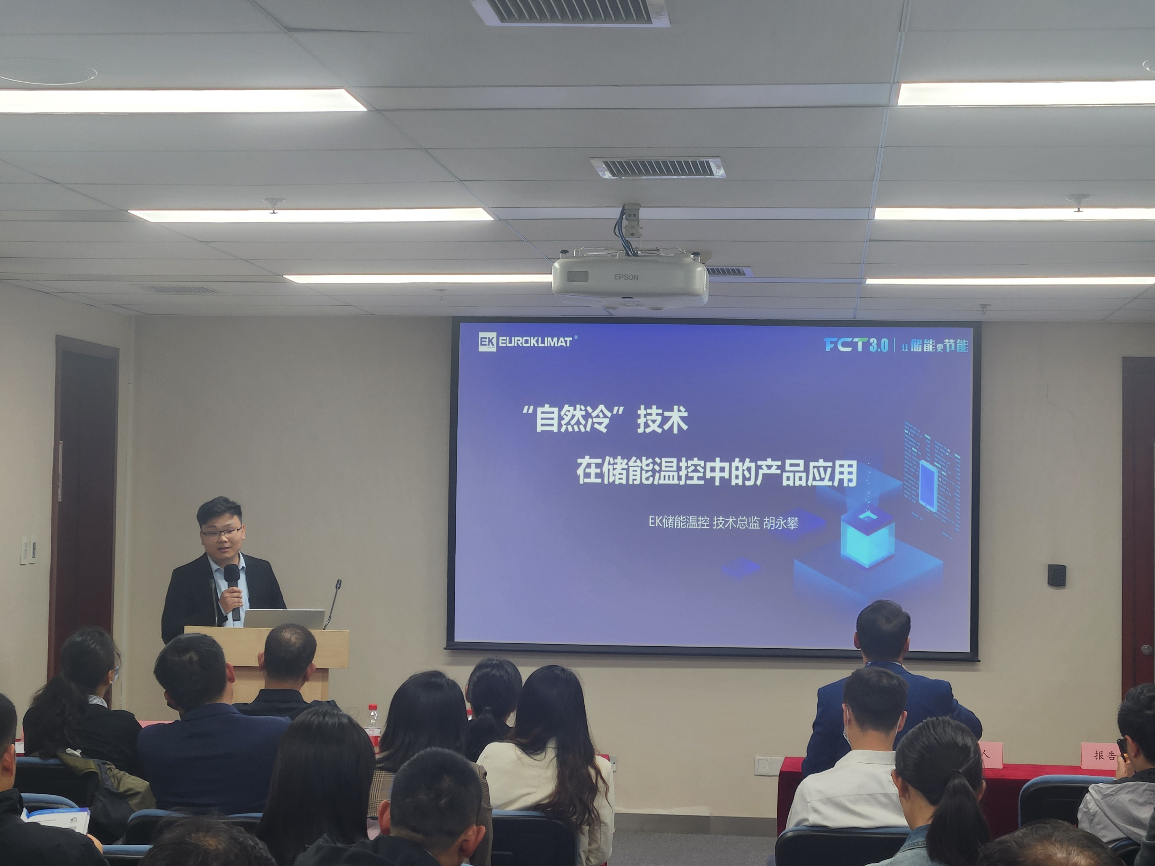 作為論壇的重要參與者,EK儲能溫控技術總監胡永攀與到場嘉賓分享了《自然冷技術在儲能溫控產品中的應用》,受到了現場嘉賓一致的認可與好評。演講中,胡永攀詳細介紹了儲能溫控技術進展及方向、儲能溫控中“自然冷”技術優勢以及“自然冷”熱管理產品技術原理和節能效果。