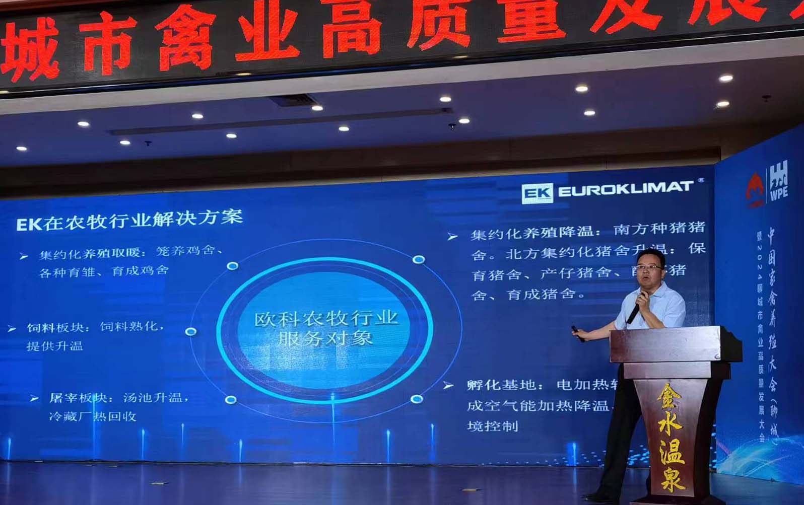 5月30日-5月31日,中國家禽養殖大會(聊城站)暨2024聊城禽業高質量發展大會在著名的中國817肉雞之鄉和冀魯豫三省交界的蛋雞聚集地——莘縣順利召開。EK空調作為戰略合作單位,攜集約化養殖環控解決方案精彩亮相本次盛會,做專題報告並榮獲“年度消費者信得過優質禽產品金雞獎”。