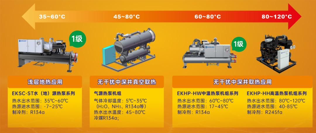 EK空調的寬溫區水(地)源熱泵產品係列,憑借其高效、綠色、穩定、智能等優勢,在地熱能領域展現出強大的競爭力。基於此,徐楓林展開介紹EK空調涵蓋常溫係列、中溫係列、高溫係列和氣源係列的熱泵機組產品陣容。