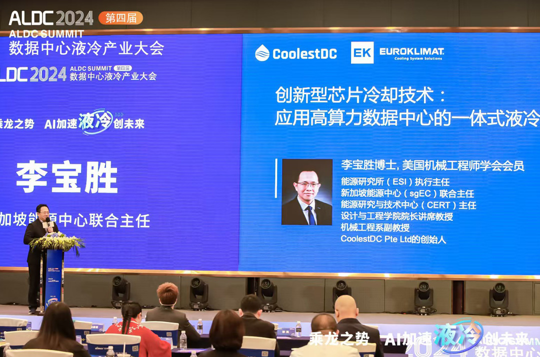 EK空(kong)調(tiao)高(gao)度(du)重(zhong)視(shi)液(ye)冷(leng)技(ji)術(shu)創(chuang)新(xin),聯(lian)合(he)新(xin)加(jia)坡(po)國(guo)立(li)大(da)學(xue)共(gong)同(tong)研(yan)發(fa)液(ye)冷(leng)和(he)液(ye)冷(leng)熱(re)回(hui)收(shou)等(deng)係(xi)統(tong)解(jie)決(jue)方(fang)案(an)。在(zai)此(ci)次(ci)行(xing)業(ye)盛(sheng)會(hui)上(shang),新(xin)加(jia)坡(po)國(guo)立(li)大(da)學(xue)李(li)教(jiao)授(shou)發(fa)表(biao)題(ti)為(wei)《創新型芯片冷卻技術:應用高算力數據中心的一體式液冷防漏冷板》的主題報告。李教授指出,算力需求推動著數據中心功率密度不斷提升,能耗與發熱量也隨之攀升,傳統風冷方案已難以滿足IT設備的散熱需求。
