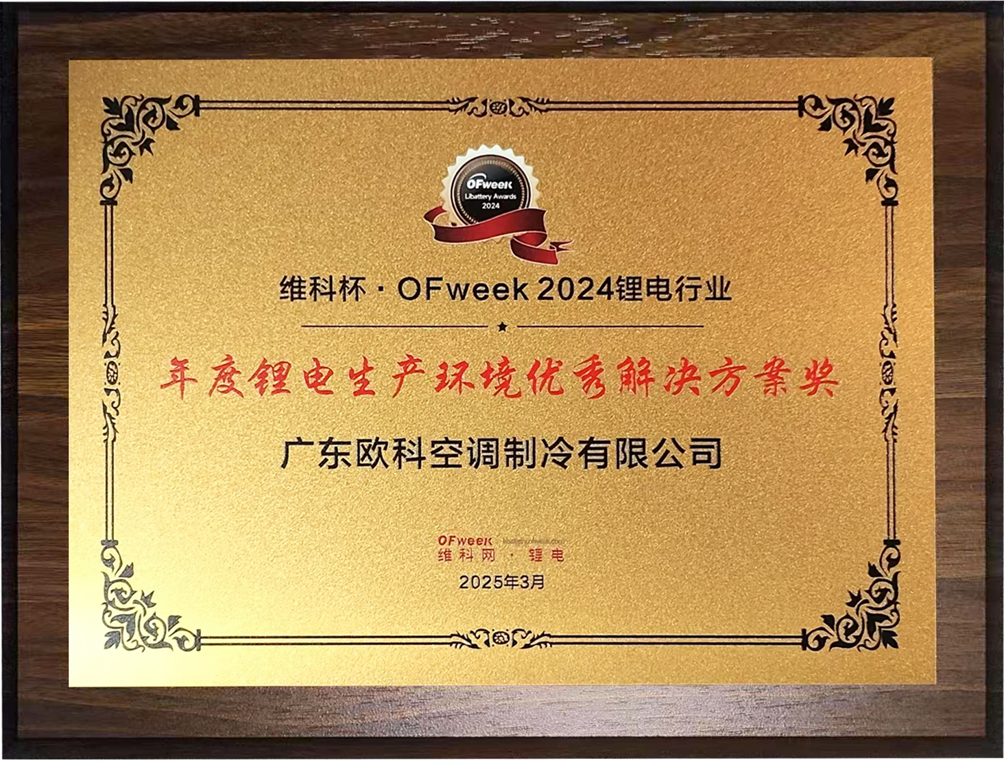 EK工業空調榮膺“維科杯·OFweek 2024鋰電生產環境優秀解決方案獎”