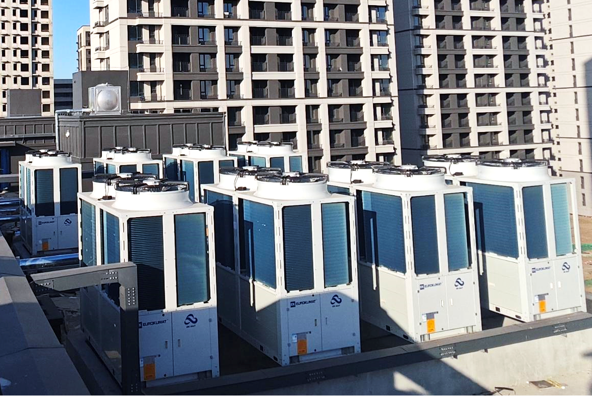 項目采用36台EK超低溫空氣源熱泵機組。通過模塊化分區設計,結合高效熱泵技術,機組滿足不同業態的供暖需求。機組10℃大溫差設計,兼容多種末端設備,確保各區域冬季室內溫度恒定舒適,為業主提供兼具經濟性與可靠性的供暖保障。
