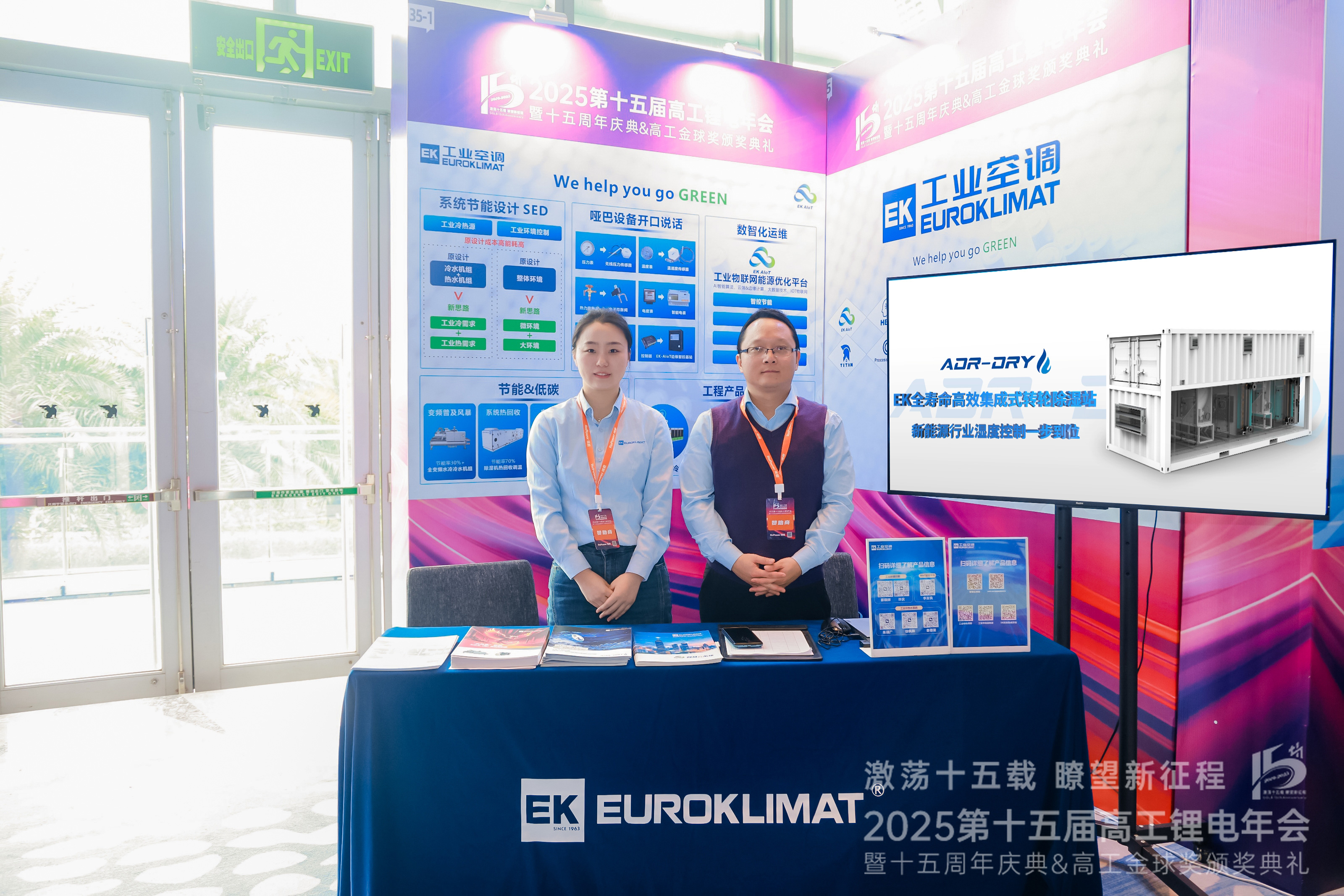 EK工業空調專注工業環境控製60餘年,始終致力於提高能源利用效率和可再生能源應用。本次大會現場,EK工(gong)業(ye)空(kong)調(tiao)設(she)立(li)專(zhuan)屬(shu)展(zhan)位(wei),技(ji)術(shu)工(gong)程(cheng)師(shi)團(tuan)隊(dui)為(wei)現(xian)場(chang)嘉(jia)賓(bin)詳(xiang)細(xi)講(jiang)解(jie)應(ying)用(yong)於(yu)新(xin)能(neng)源(yuan)鋰(li)電(dian)生(sheng)產(chan)的(de)環(huan)境(jing)控(kong)製(zhi)產(chan)品(pin)與(yu)節(jie)能(neng)降(jiang)碳(tan)方(fang)案(an),獲(huo)得(de)與(yu)會(hui)者(zhe)的(de)廣(guang)泛(fan)關(guan)注(zhu)與(yu)好(hao)評(ping)。