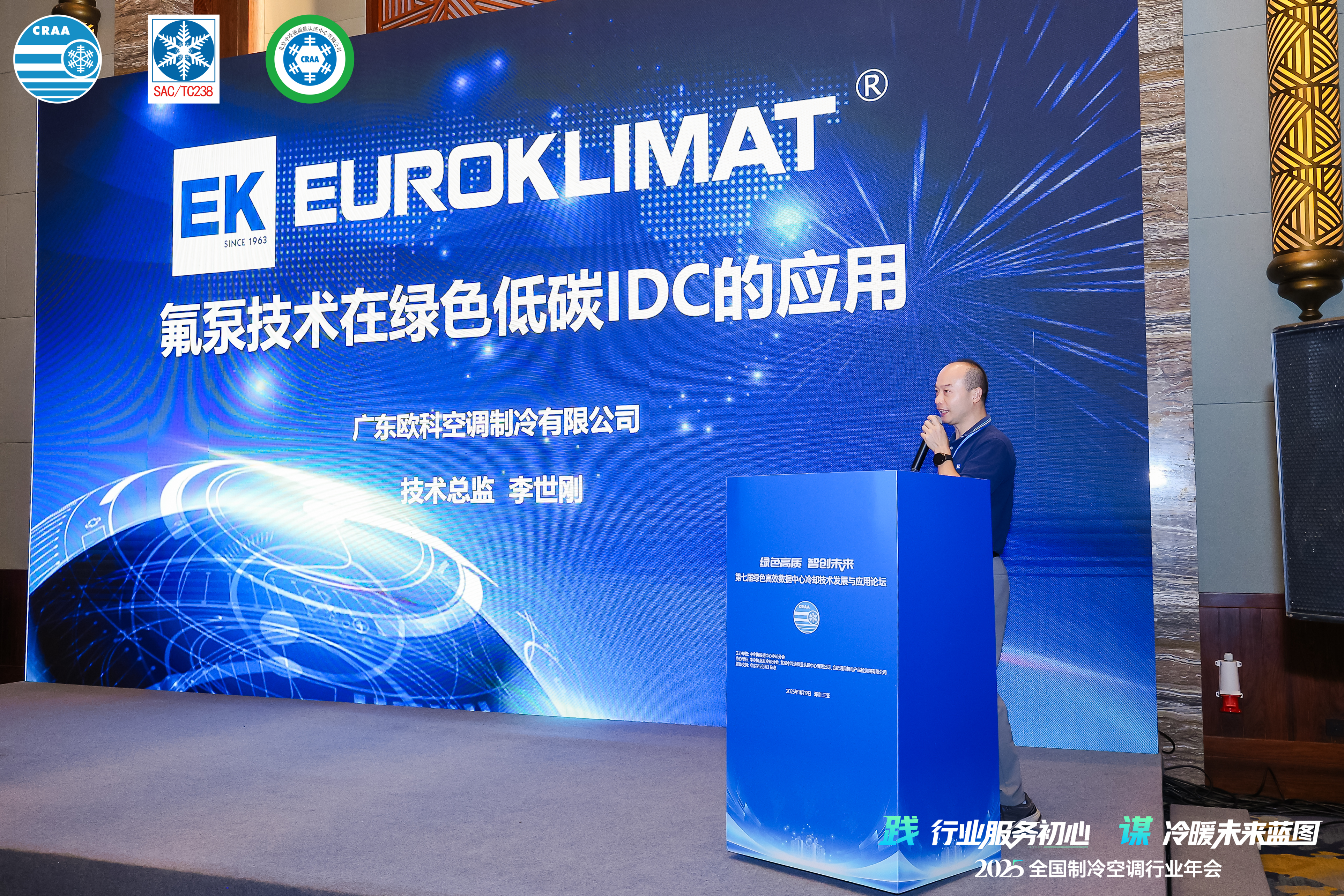 在同期舉辦的“綠色高效數據中心冷卻技術發展及應用論壇”中,EK技術總監李世剛發表《氟泵技術在綠色低碳IDC的應用》主題演講。他指出,數據中心作為能耗大戶,2024年國內年耗電量已達約1660億千瓦時,占全社會用電量的1.68%。其中,空調係統能耗占比高達約40%,節能空間巨大。