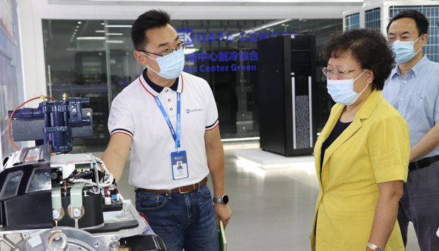 EK市場營銷總監王健向喻麗君副市長重點介紹了EK自主研發磁懸浮離心機組、EKRV-E全變頻•智慧雲•多聯機、-30℃超低溫製熱空氣源熱泵等產品特點和性能。