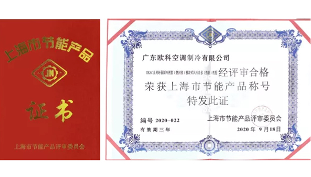 EKAC係列模塊式風冷熱泵機組榮獲“上海市節能產品”稱號