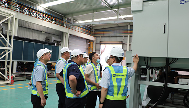 5月19日,“EK2021-千商活動”新疆辦首批經銷商嘉賓蒞臨EK南方基地參觀指導。EK銷售總監彭健明和EK市場部經理吳明全對嘉賓們的到來表示熱烈歡迎和感謝,並就未來合作展開深入探討。吳明全介紹了EK的品牌實力、競爭優勢、經營方式和與商家合作理念。EK工程師分別就EK空氣處理機組、模塊機組和多聯機產品做了詳細介紹,並和大家分享了EK空調在新疆地區的經典應用案例。EK四川項目辦事處銷售經理趙建新和EK新疆辦事處銷售經理陳立陪同參觀。