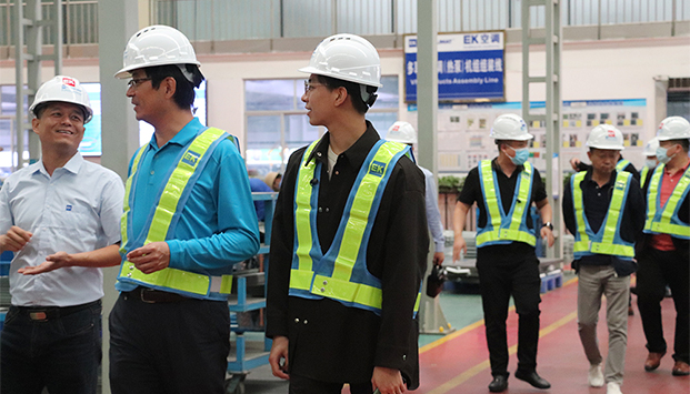 10月22日,第46場EK千商活動如期舉行,天津辦2021年首批經銷商嘉賓蒞臨EK南方基地參觀考察。EK市場營銷總監王健、EK京津區區總陶文忠和EK市場部經理吳明全對嘉賓們的到來表示熱烈歡迎和感謝,並就未來合作展開深入探討。吳明全和經銷商嘉賓介紹了EK的品牌曆史、競爭優勢、經營方式及與商家的合作理念,並重點展示了EK在熱回收、兩端能力、精密控製方麵的創新產品和先進技術,以及EK在天津地區的經典應用案例。