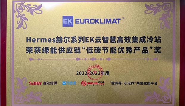實至名歸!EK雲智慧高效集成冷站榮獲“低碳節能優秀產品”獎!2023-02-13在2022-2023年度綠能供應鏈評選活動中,EK空調旗下Hermes赫爾係列EK雲智慧高效集成冷站憑借在節能高效、係統集成、智能控製等方麵的突出優勢,榮獲“低碳節能優秀產品”獎,並獲得組委會頒發的榮譽證書。