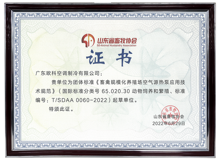 近日,經山東省畜牧協會批準,團體標準《畜禽規模化養殖場空氣源熱泵應用技術規範》正式發布並實施。廣東歐科空調製冷有限公司(簡稱:EK空調)作為起草單位,參與了該標準的製定。