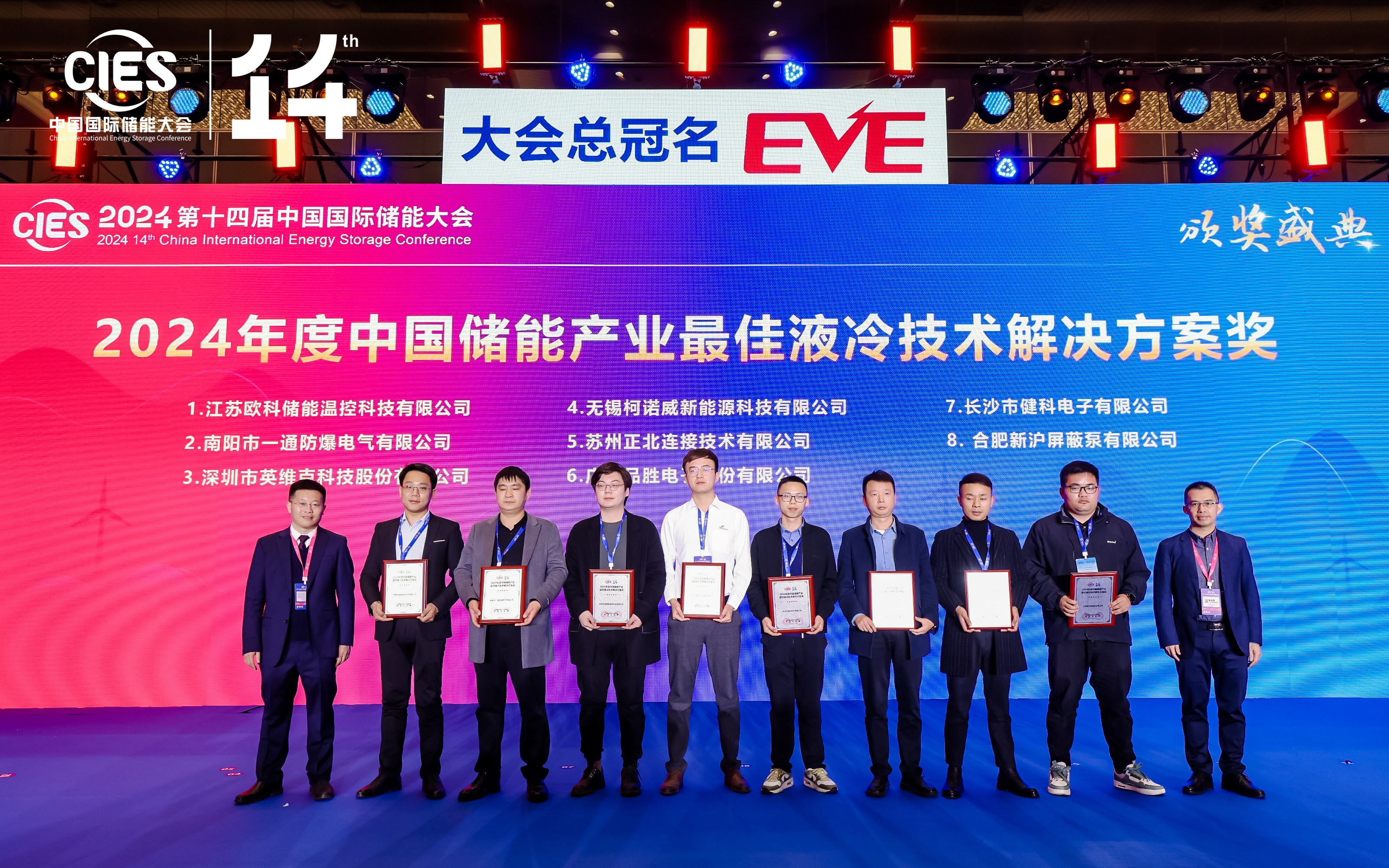 CIES儲能展前夕,在“儲能之夜”招待晚宴暨2024年度中國儲能產業最具影響力係列獎項頒獎盛典上,EK儲能溫控榮膺“2024年度中國儲能產業最佳液冷技術解決方案獎”,充分體現了儲能業界對EK儲能溫控產品技術創新和亮點的高度認可。