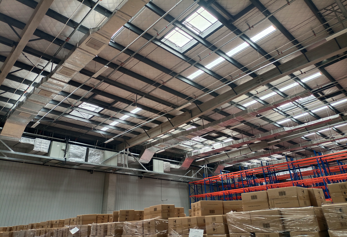 詳細了解客戶需求和現場勘察後,結合倉庫應用特點,為客戶製定了「EKRV-E全直流變頻機組 EKDB-C1直膨管道式機組」工業多聯中央空調解決方案。