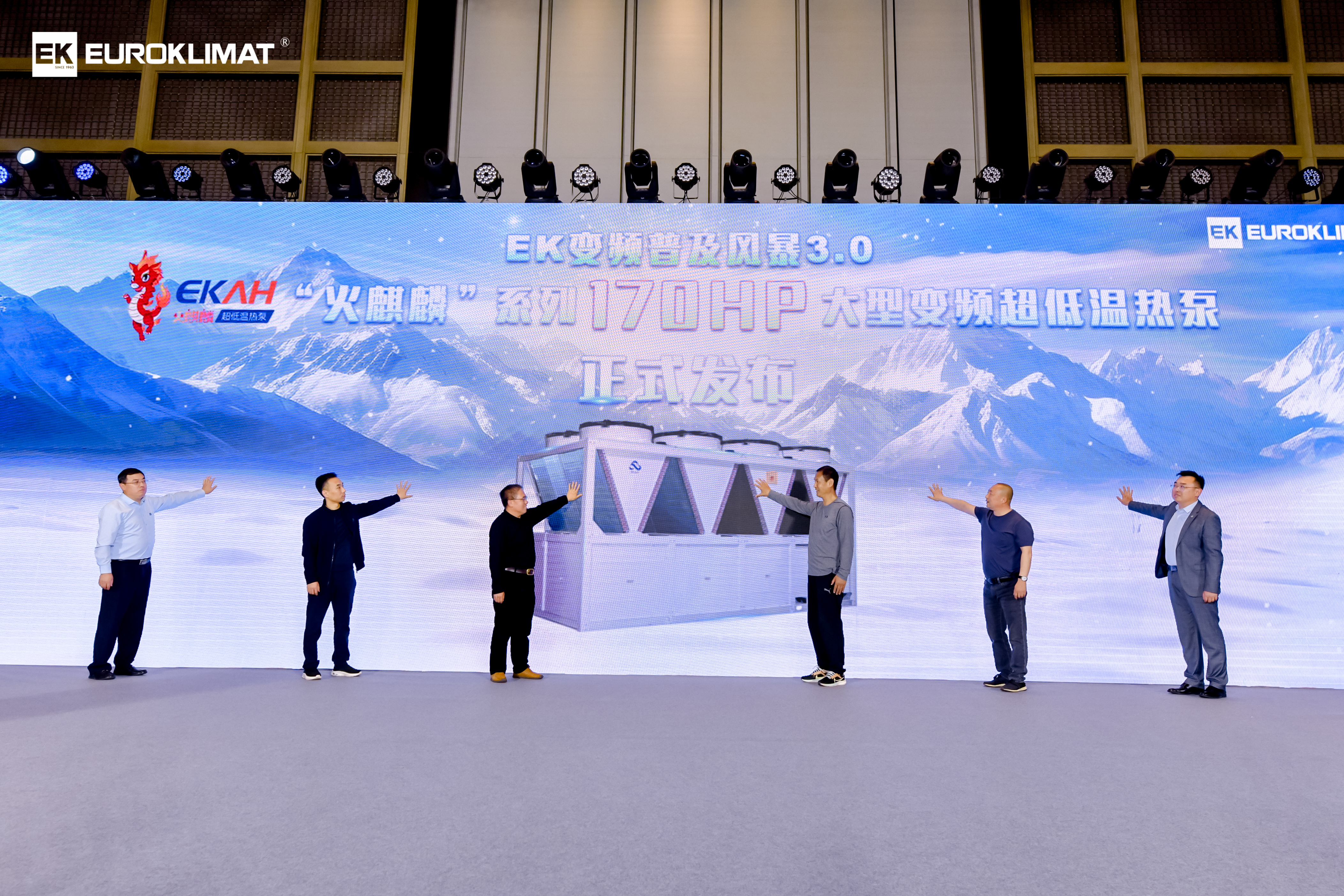 麵對市場不斷升級的需求,EK空調在本次大會上正式啟動變頻普及風暴3.0,隆重發布“火麒麟”係列170HP大型變頻超低溫熱泵,再次為行業注入新的價值。