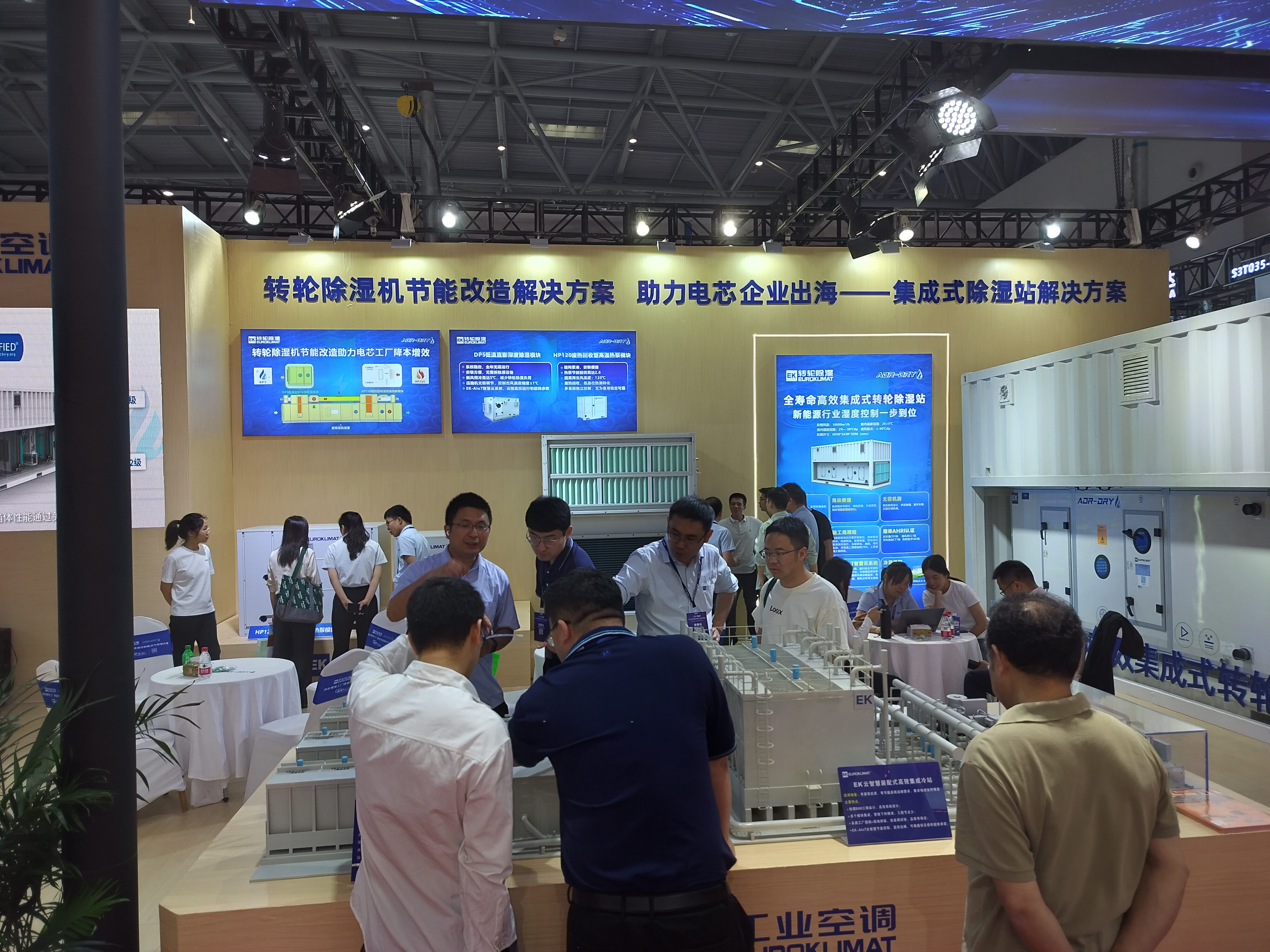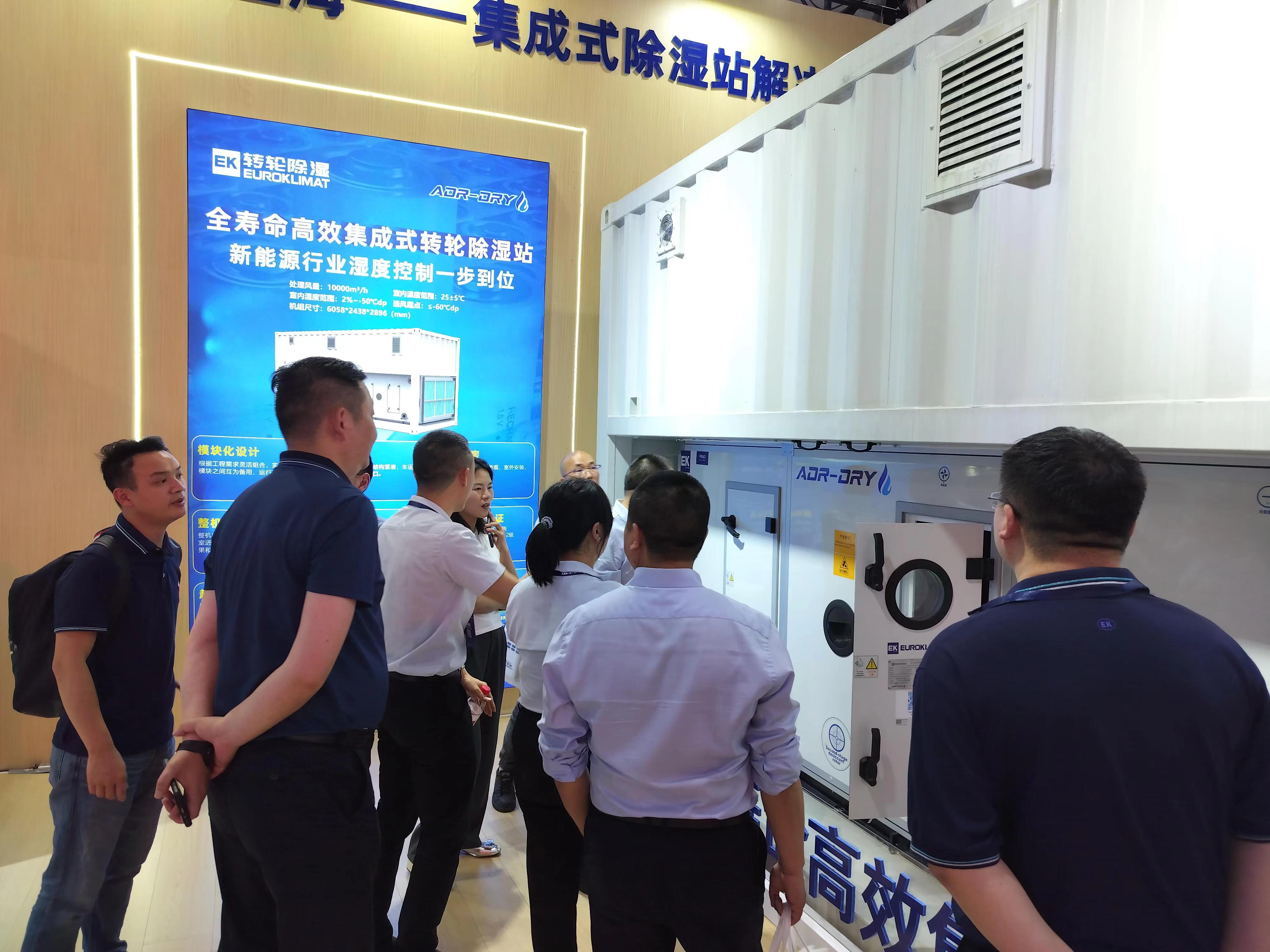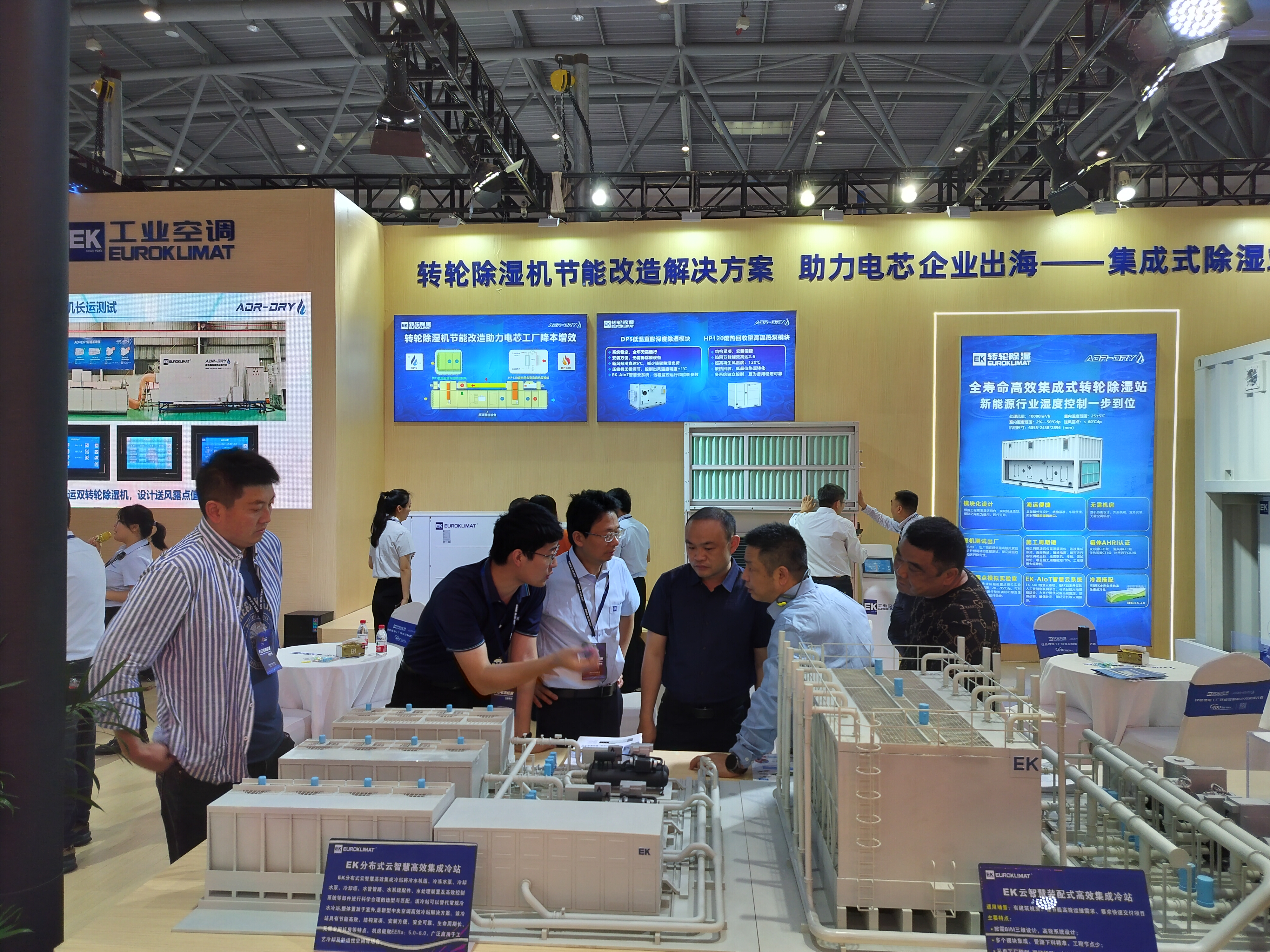 基於此,EK工業空調在CIBF2024展會上重點展示了一體化高效轉輪除濕機、分布式雲智慧高效集成冷站、工業高溫熱泵等一係列節能方案,為電芯企業提供了全方位的節能解決方案;同時特別推介了基於DP5低溫直膨深度除濕模塊和HP120廢熱回收型高溫熱泵模塊的轉輪除濕機節能改造解決方案,有效地降低了企業運行成本,助力產業可持續發展。