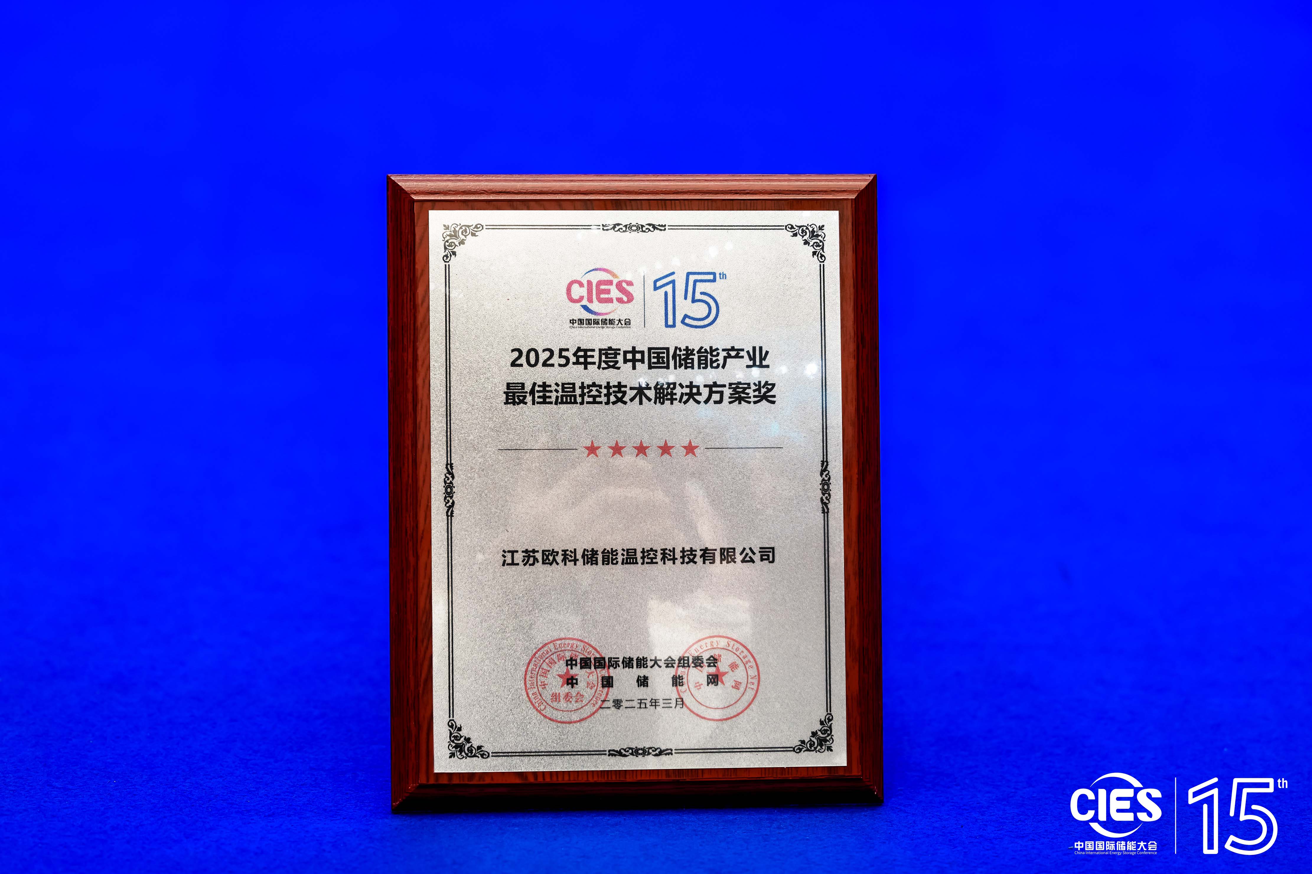 2025年3月23日-26日,CIES2025第十五屆中國國際儲能大會暨展覽會在杭州隆重舉行。在同期舉辦的“2025中國儲能產業最具影響力係列獎項”頒獎盛典上,EK儲能溫控憑借領先的儲能溫控技術實力,強勢斬獲“2025年度中國儲能產業最佳溫控技術解決方案獎”,再次彰顯行業標杆地位。
