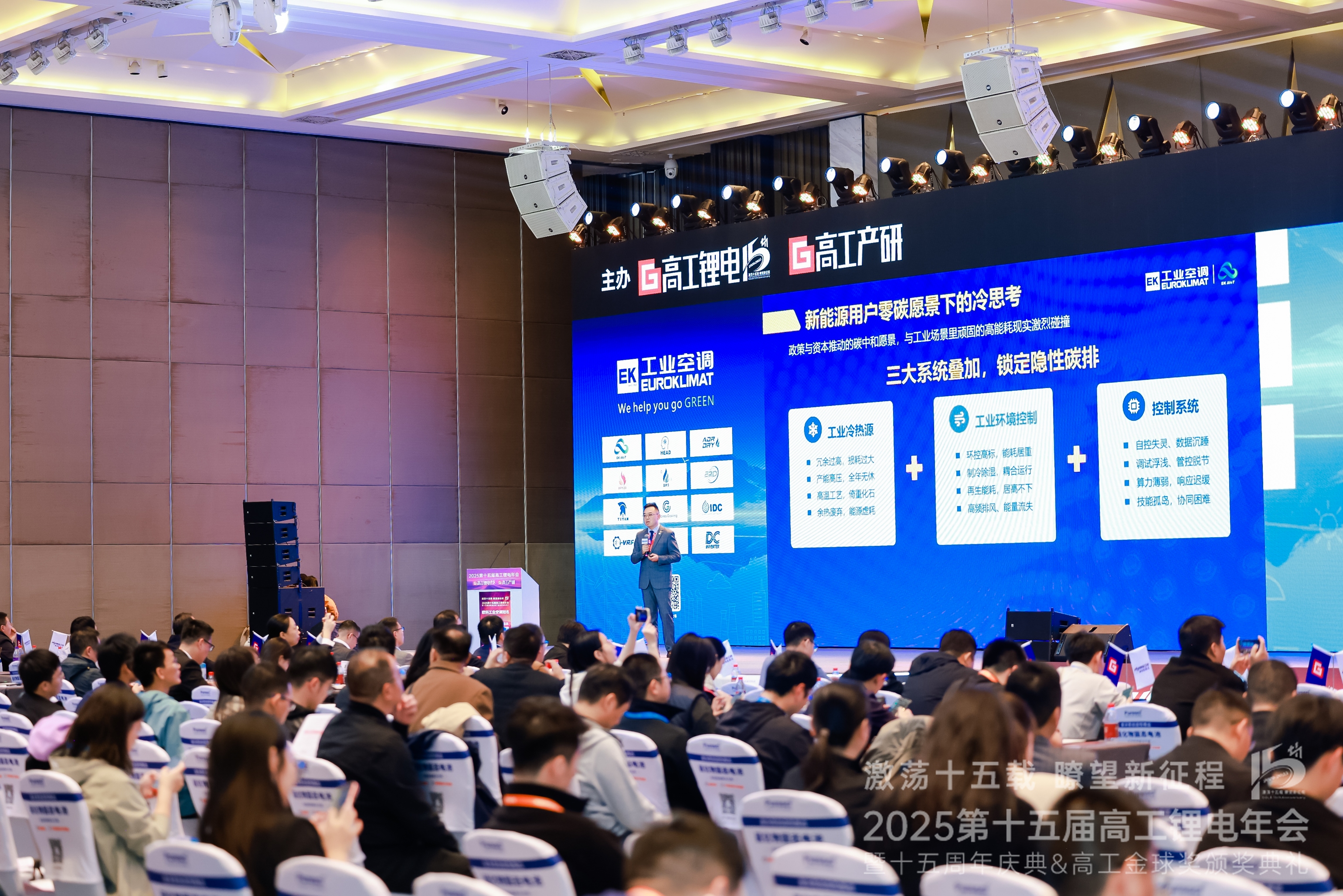 在大會同期舉辦的高工金球獎頒獎典禮上,EK工業空調憑借在鋰電節能減碳領域的係統創新與實質性應用成果,榮獲 “年度創新獎” 。這是對EK工業空調在綠色鋰電工廠環境控製領域技術領先性與行業貢獻的雙重認可。