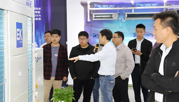 12月29日,“EK2020-千商活動”廣州辦所轄區域首批經銷商嘉賓蒞臨EK南方基地參觀指導。EK銷售總監彭健明、市場營銷總監王健和兩廣區銷售總經理陽柳對嘉賓們的到來表示了熱烈歡迎,並就未來合作展開探討。EK水係統產品管理部經理呂芳玉介紹了EK品牌實力、經營方式和與商家合作理念,同時介紹了EK在熱回收、超低溫製熱、精密控製方麵的產品和技術。