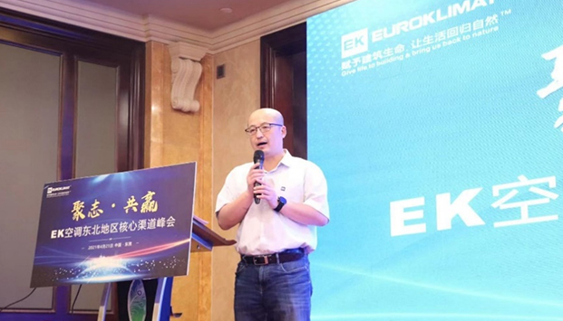 會議開始,EK東北區區域總經理張偉首先對東北經銷商的到來表示歡迎和感謝,並和在場嘉賓分享EK在近兩年取得的亮眼成績。在疫情影響下的2020年,EK在產值和利潤方麵都實現了雙位數的增長,2021年第一季度,EK更是在訂單和發貨上創造了建廠12年來的新高,其中,東北區2021年第一季度訂單量已完成全年預算的80%。