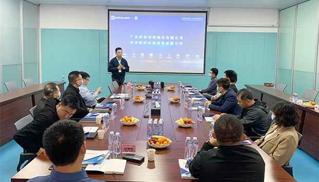 12月15日,第50場EK千商活動如期舉行,青島辦2021年首批經銷商嘉賓蒞臨EK南方基地參觀考察。EK市場營銷總監王健、EK青島辦事處銷售經理王雪連對嘉賓們的到來表示熱烈歡迎和感謝,並就未來合作展開深入探討。王健和經銷商嘉賓介紹了EK的品牌曆史、競爭優勢、經營方式及與商家的合作理念,並重點展示了EK在熱回收、兩端能力、精密控製方麵的創新產品和先進技術,以及EK在青島地區的經典應用案例。