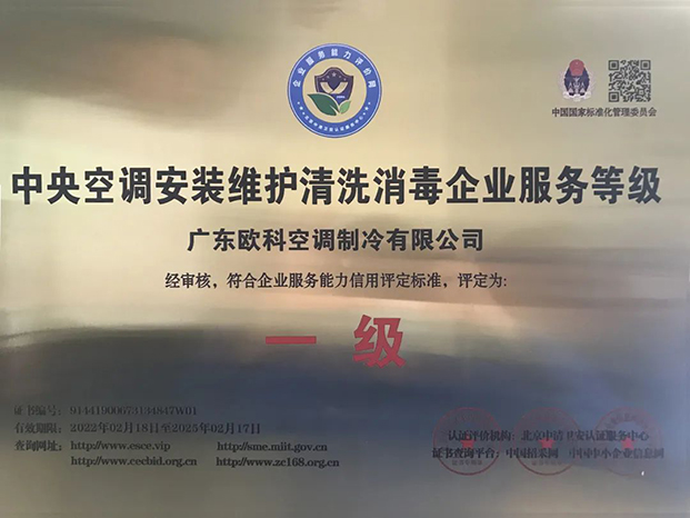 目前,EK空調憑借優質的服務體係和領先的技術水平榮獲“中央空調安裝維護清洗消毒企業一級服務資質”和“中國設備維修安裝企業能力等級證書(製冷空調A類Ⅰ級、D類Ⅰ級)”,得到行業權威的認可。